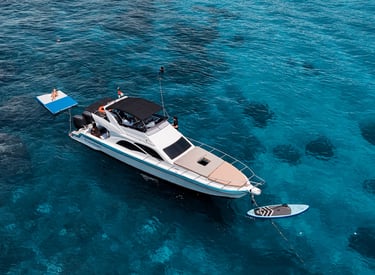 Un día recorriendo las aguas de Bali. Disfruta de pesca en alta mar, una visita a Nusa Penida o diseña tu día soñado en lancha privada con capitán y todas las comodidades que necesites.