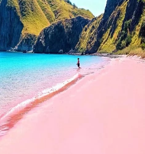 Desde lo que se conoce como Manta Point os trasladaremos hasta Pink Beach, una playa de arena rosa.